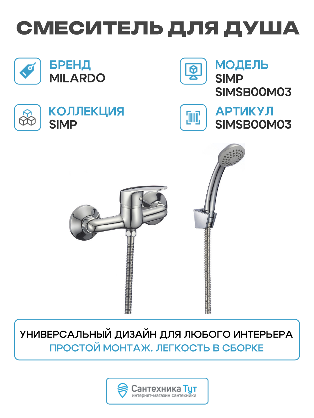 Смеситель для душа Milardo Simp SIMSB00M03 Хром на стену, качество и надежность: сравнение цен, характеристики, фото, актуальное наличие и цены.