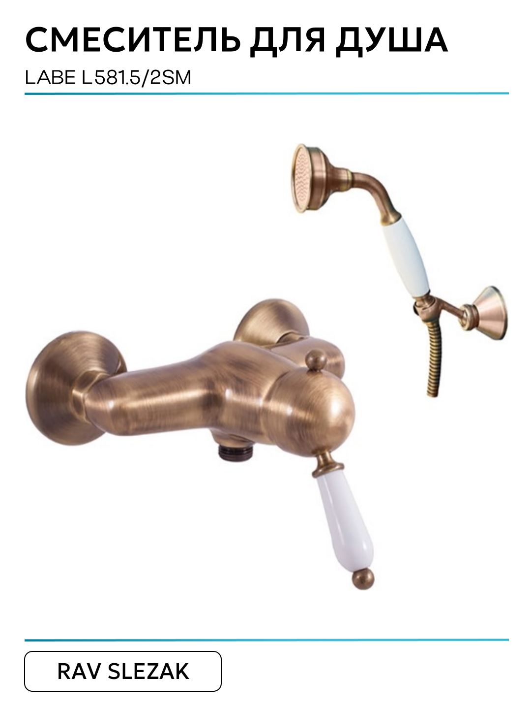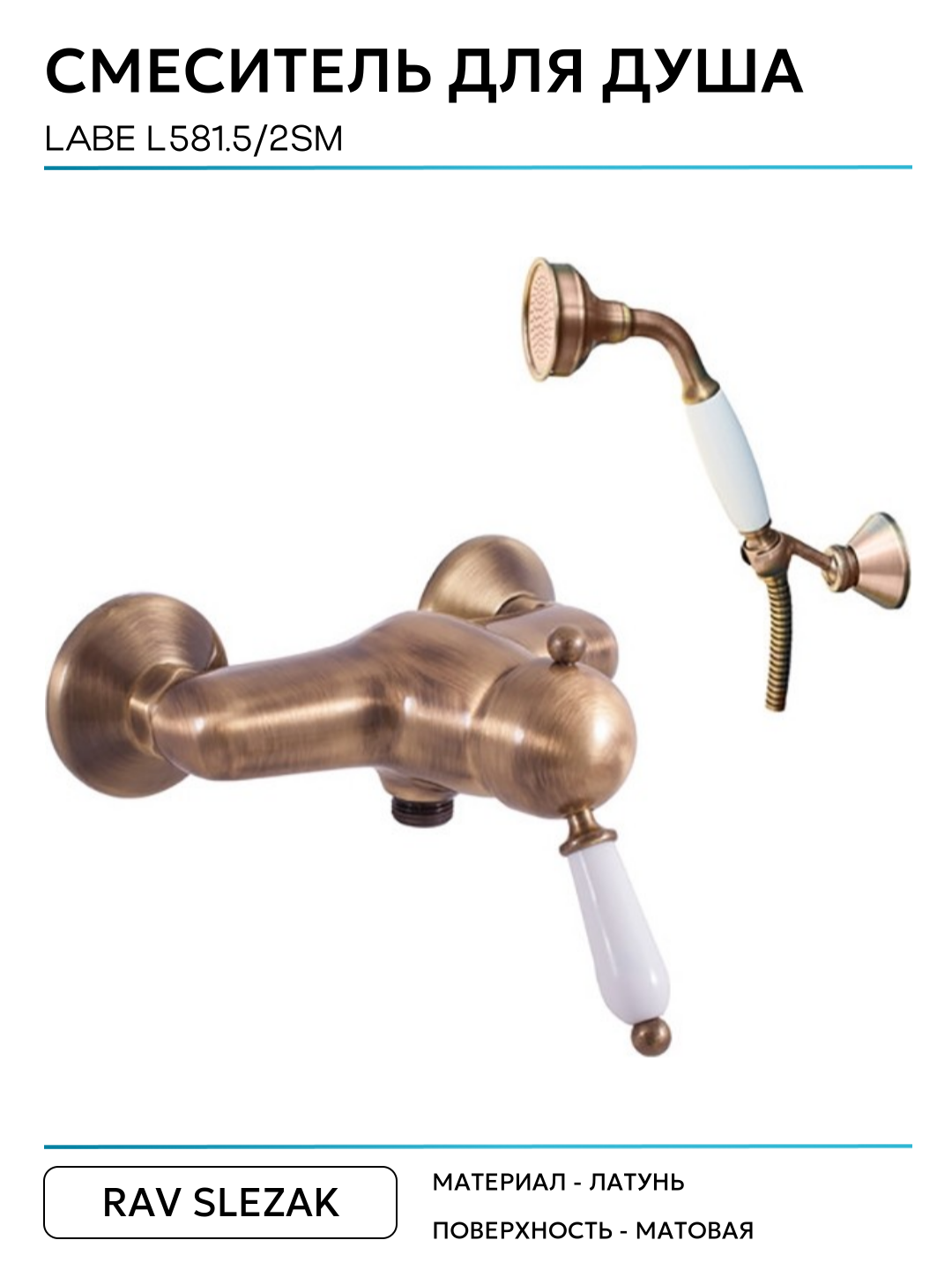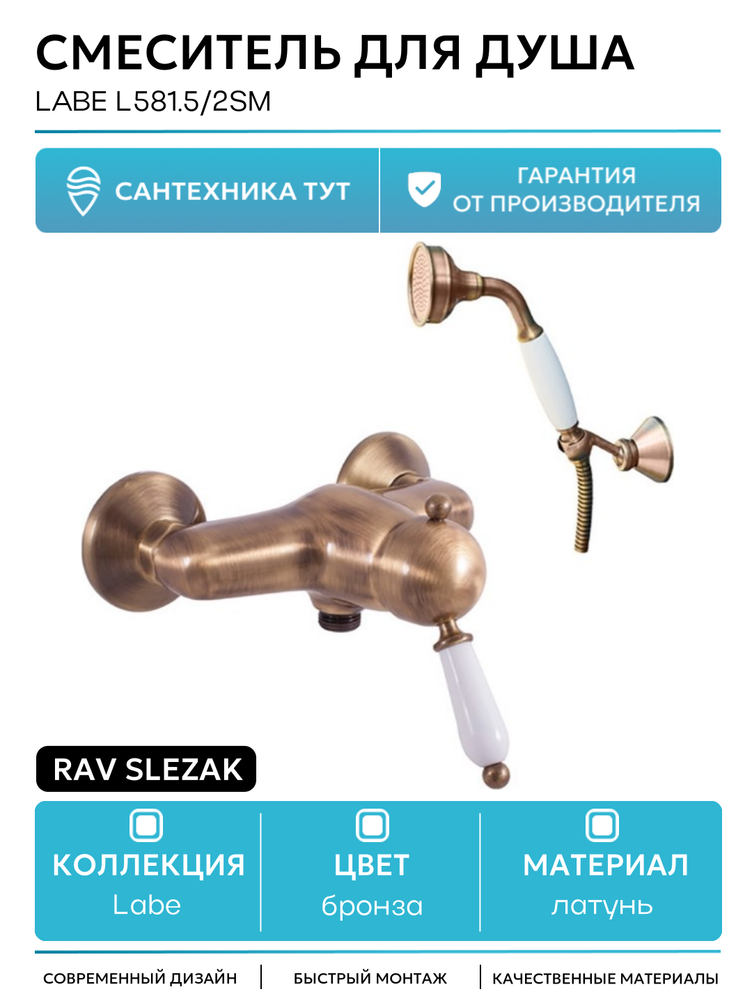 Смеситель для душа Rav Slezak Labe L581.5/2SM Бронза латунь на стену Чехия: сравнение цен, характеристики, фото, актуальное наличие и цены.
