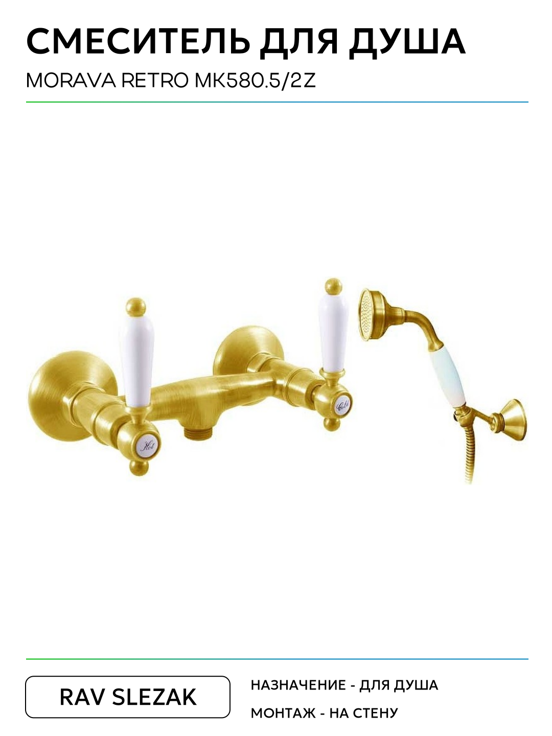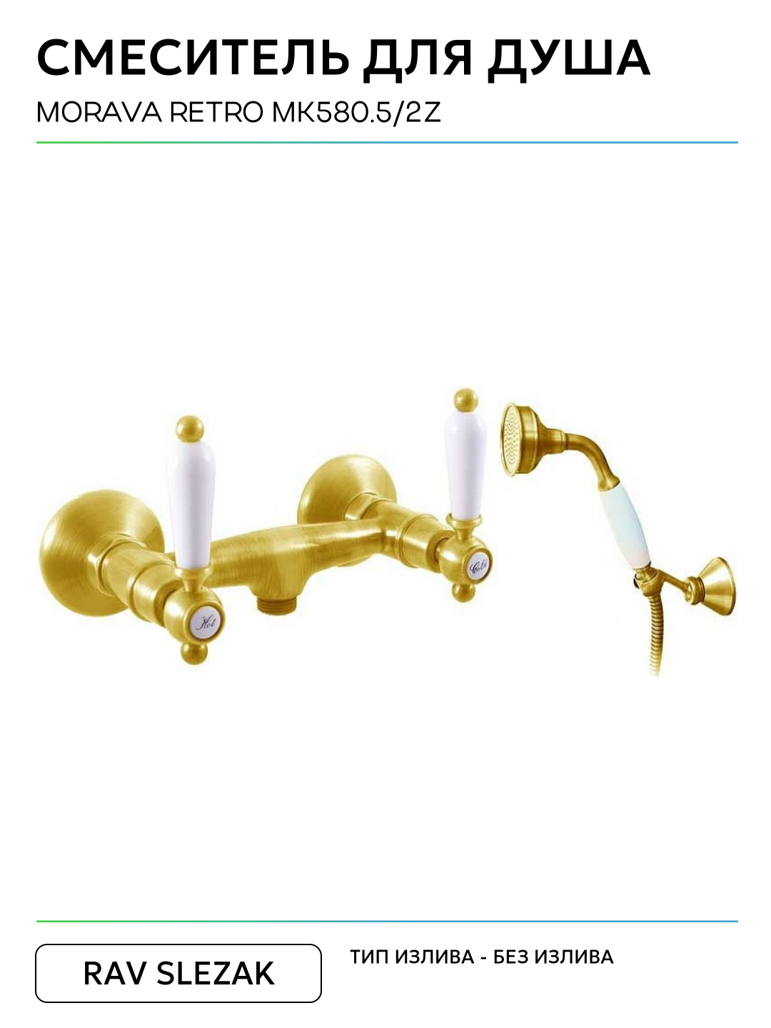 Смеситель для душа Rav Slezak Morava retro MK580.5/2Z Золото латунь на стену Чехия: сравнение цен, характеристики, фото, актуальное наличие и цены.