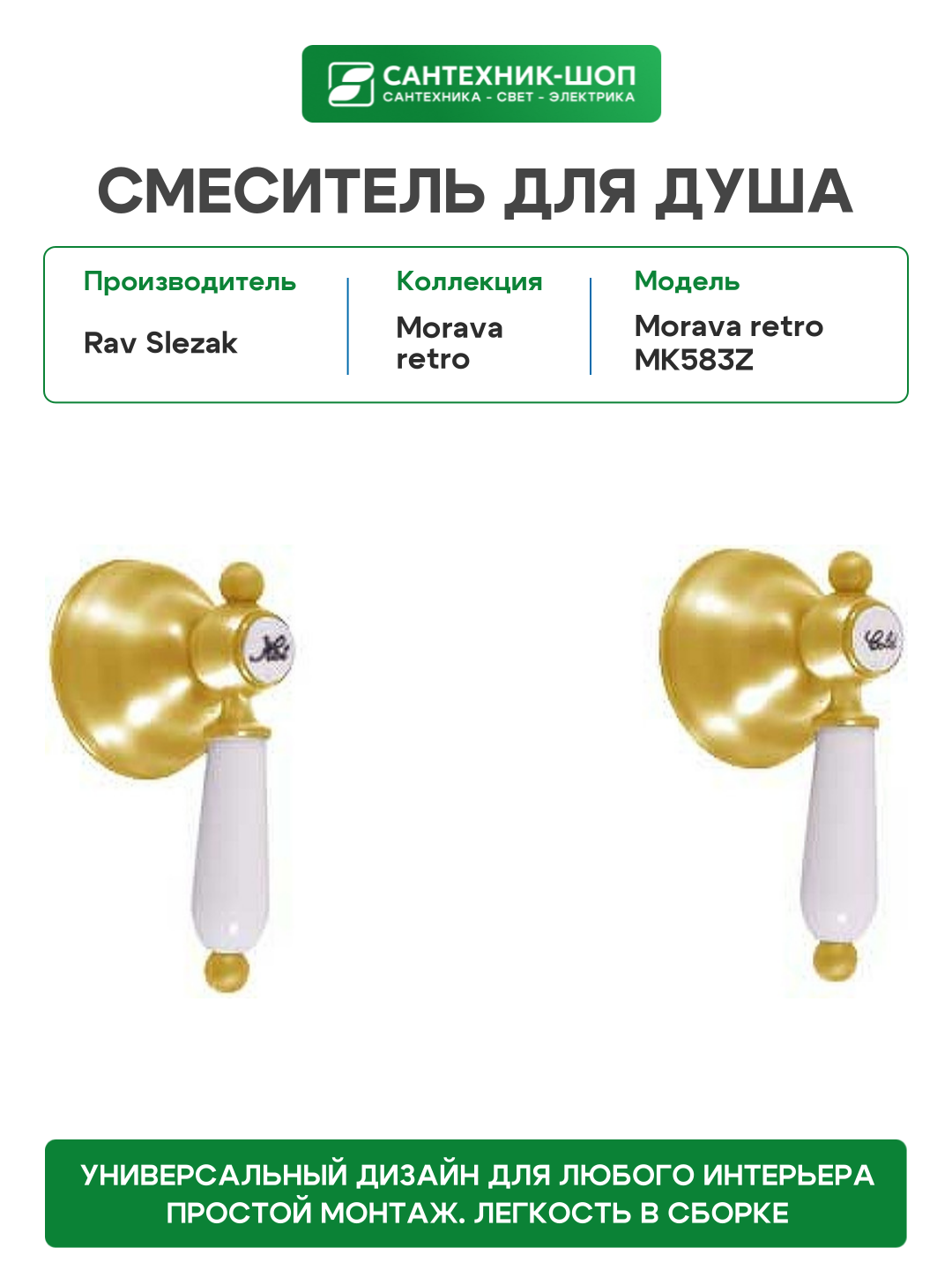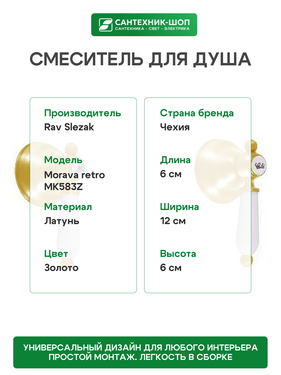 Смеситель для душа Rav Slezak Morava retro MK583Z Золото латунь встраиваемый Чехия: сравнение цен, характеристики, фото, актуальное наличие и цены.