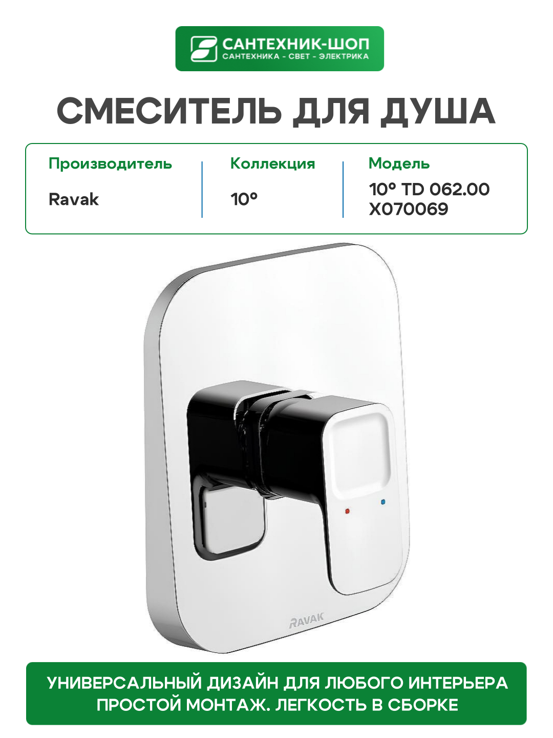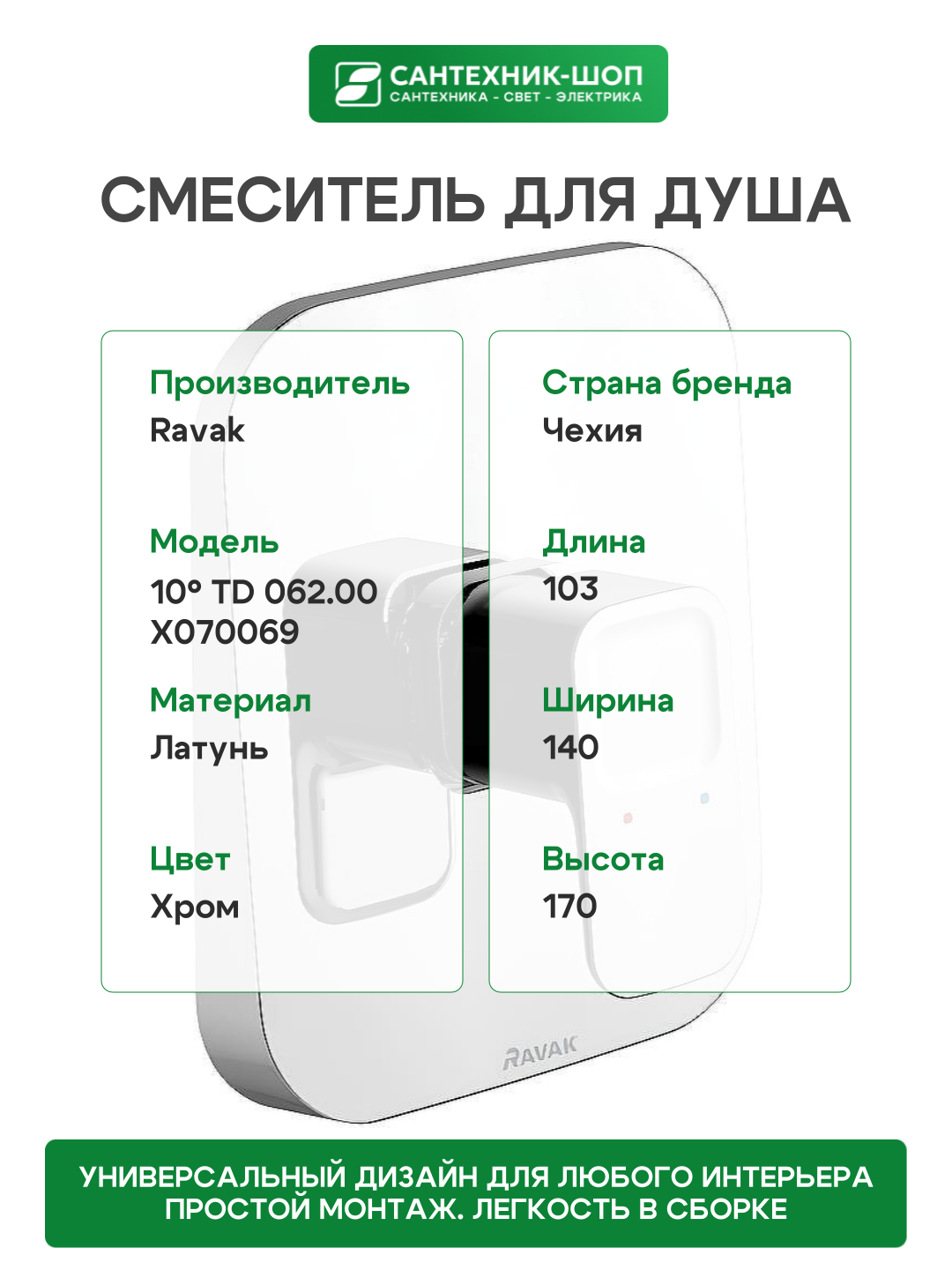 Смеситель для душа Ravak 10° TD 062.00 X070069 Хром латунь встраиваемый: сравнение цен, характеристики, фото, актуальное наличие и цены.