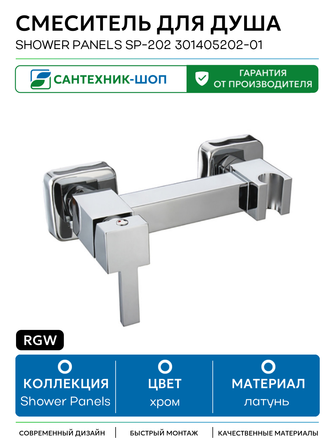 Смеситель для душа RGW Shower Panels SP-202 301405202-01 Хром латунь на стену Германия: сравнение цен, характеристики, фото, актуальное наличие и цены.