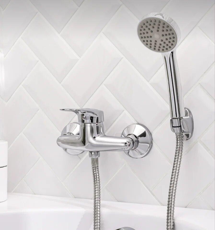 Смеситель для душа РМС SL55 003 с душевым гарнитуром, настенный, однорычажный, хром, российский: сравнение цен, характеристики, фото, актуальное наличие и цены.