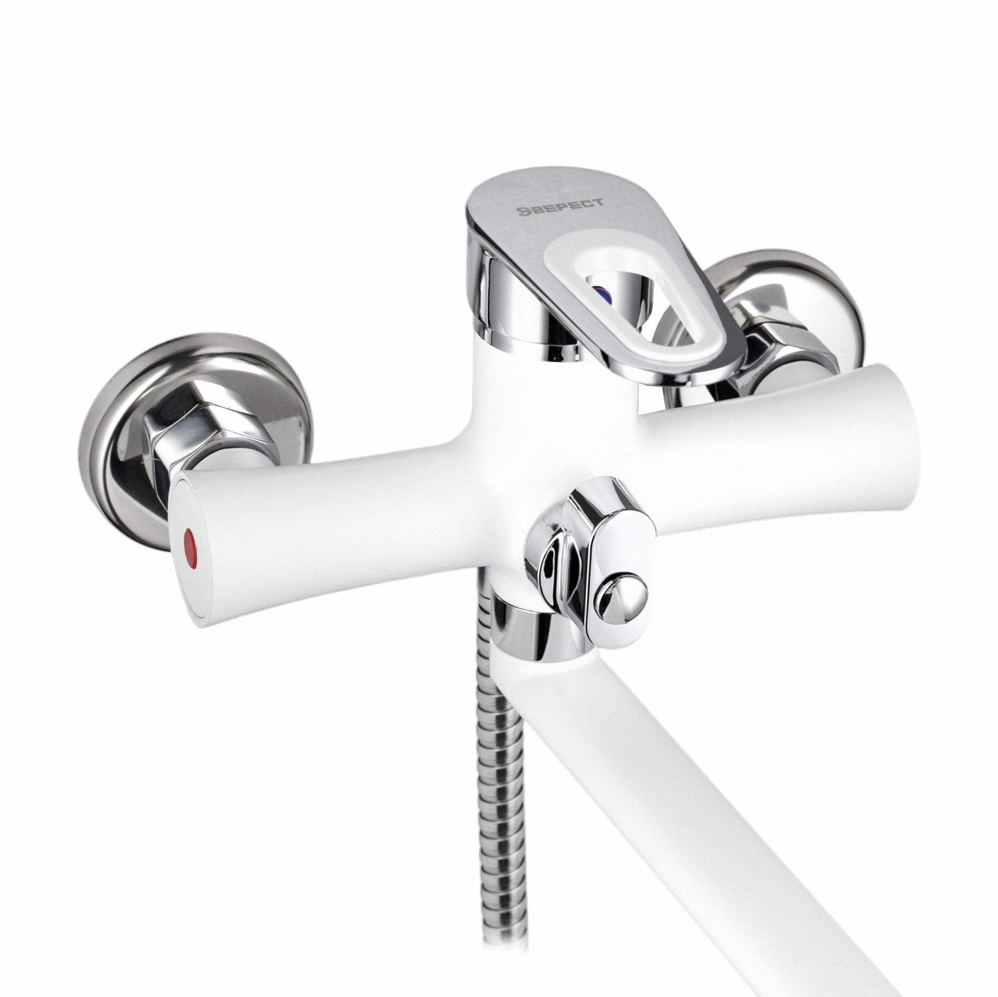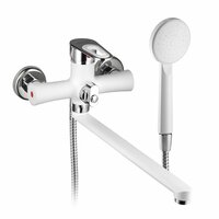 Купить Смеситель для душа с длинным изливом и переключением на лейку, белый с хромированными вставками с доставкой по всей России.
