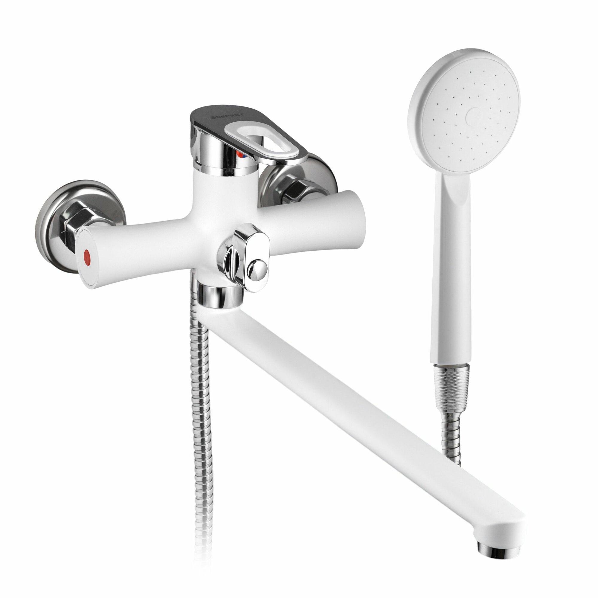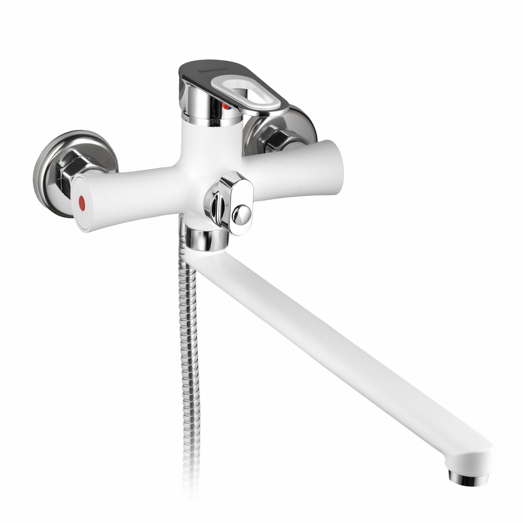 Смеситель для душа с длинным изливом и переключением на лейку, белый с хромированными вставками: сравнение цен, характеристики, фото, актуальное наличие и цены.