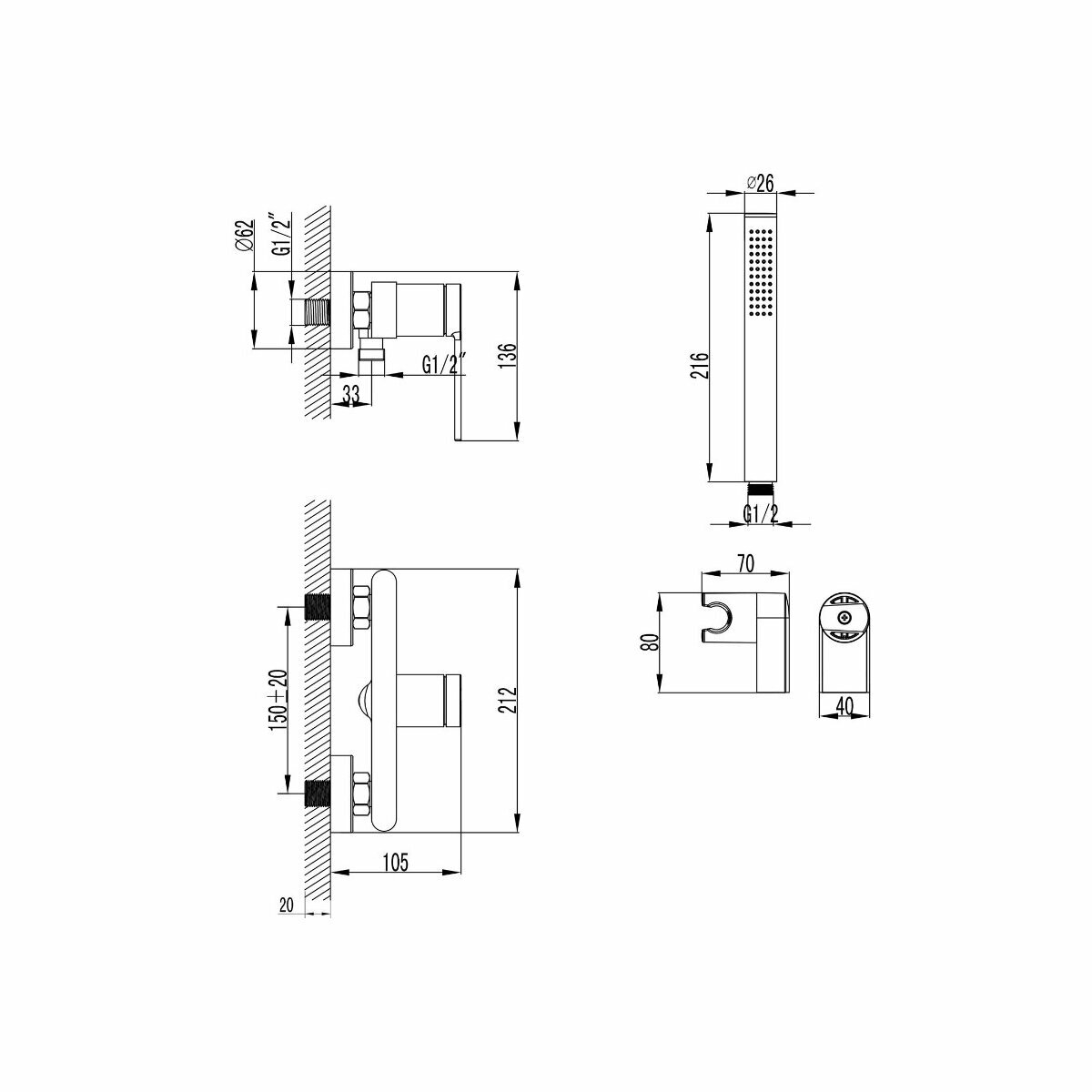 Смеситель для душа с полным душевым набором Azario (Азарио) Vincente AZ-VRZ338326AJ графит: сравнение цен, характеристики, фото, актуальное наличие и цены.
