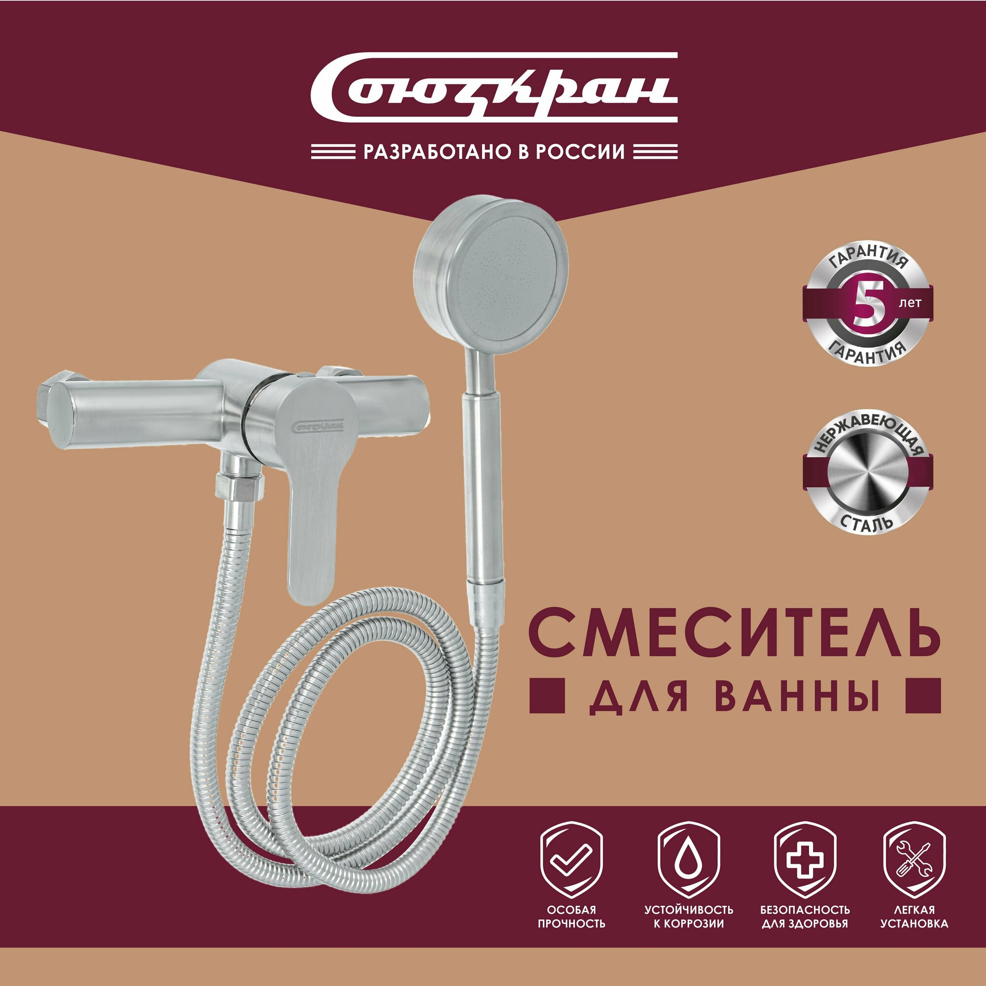Смеситель для душа СоюзКран SS04-N118, керамический картридж 35 мм, однорычажный , без излива, с лейкой для душа и шлангом для душа, нержавеющая сталь: сравнение цен, характеристики, фото, актуальное наличие и цены.