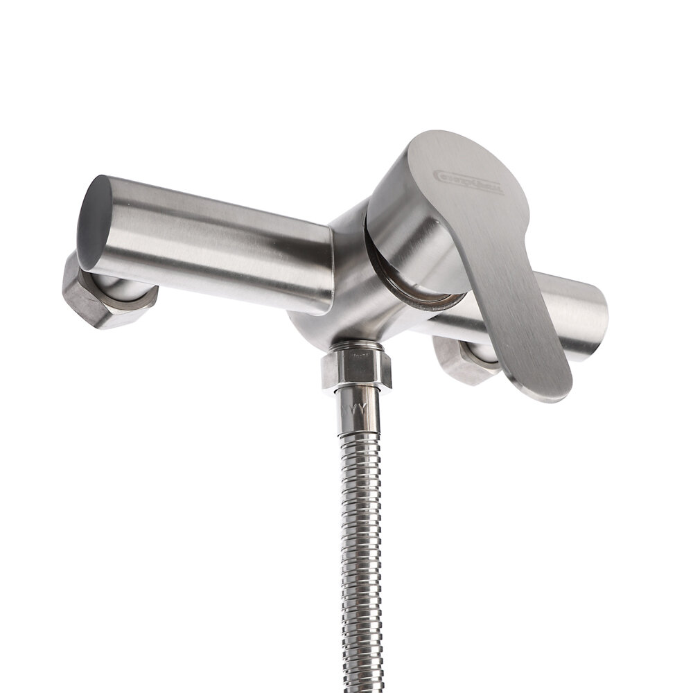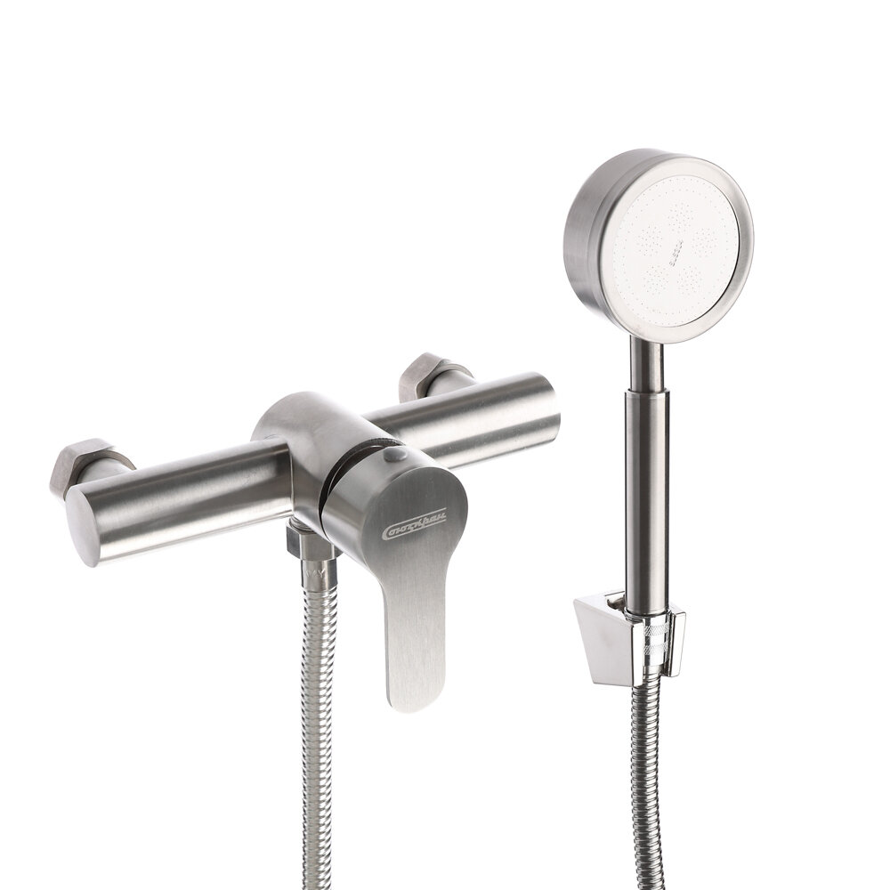 Купить Смеситель для душа СоюзКран SS04-N118, керамический картридж 35 мм, однорычажный , без излива, с лейкой для душа и шлангом для душа, нержавеющая сталь с доставкой по всей России.
