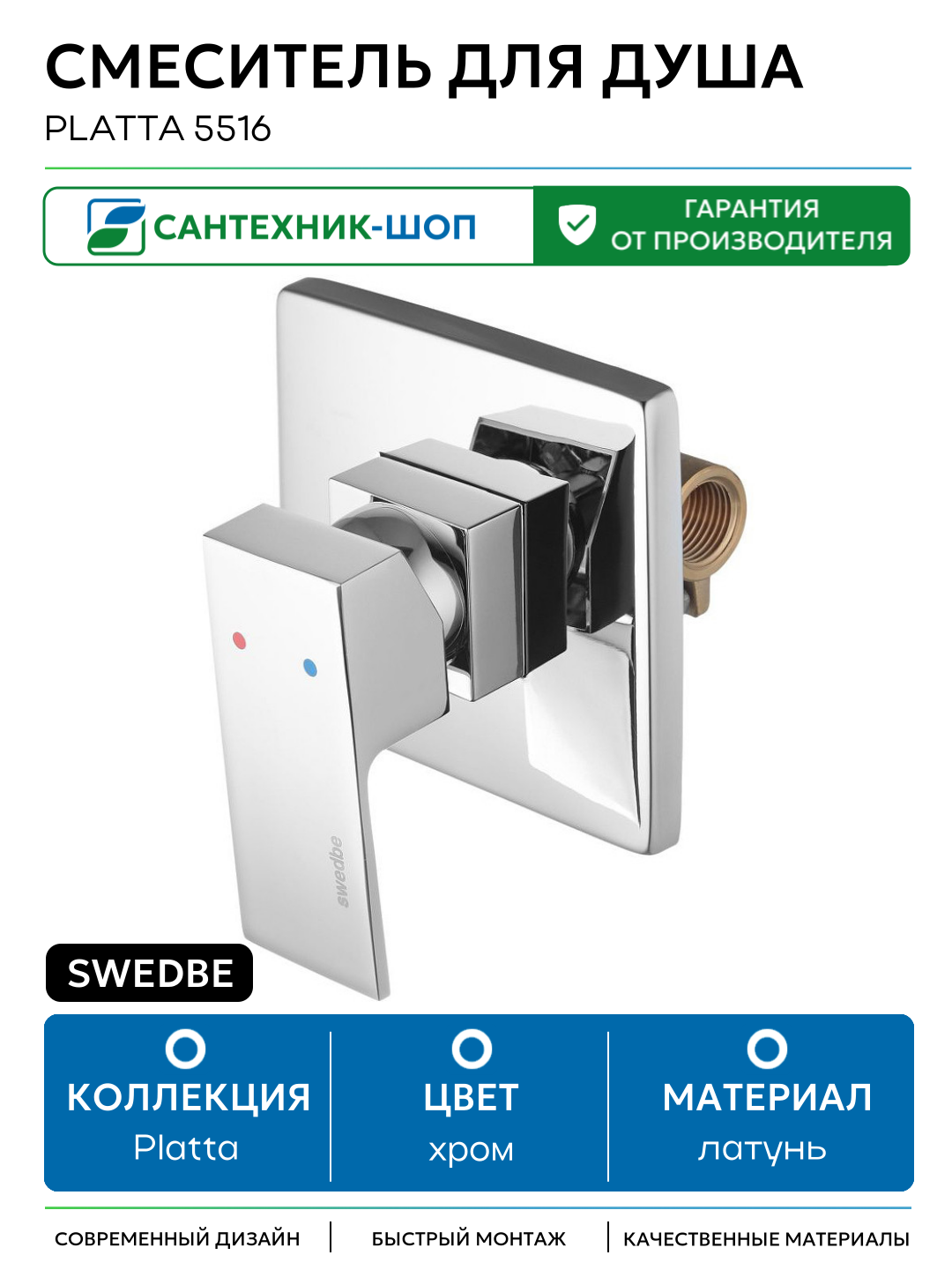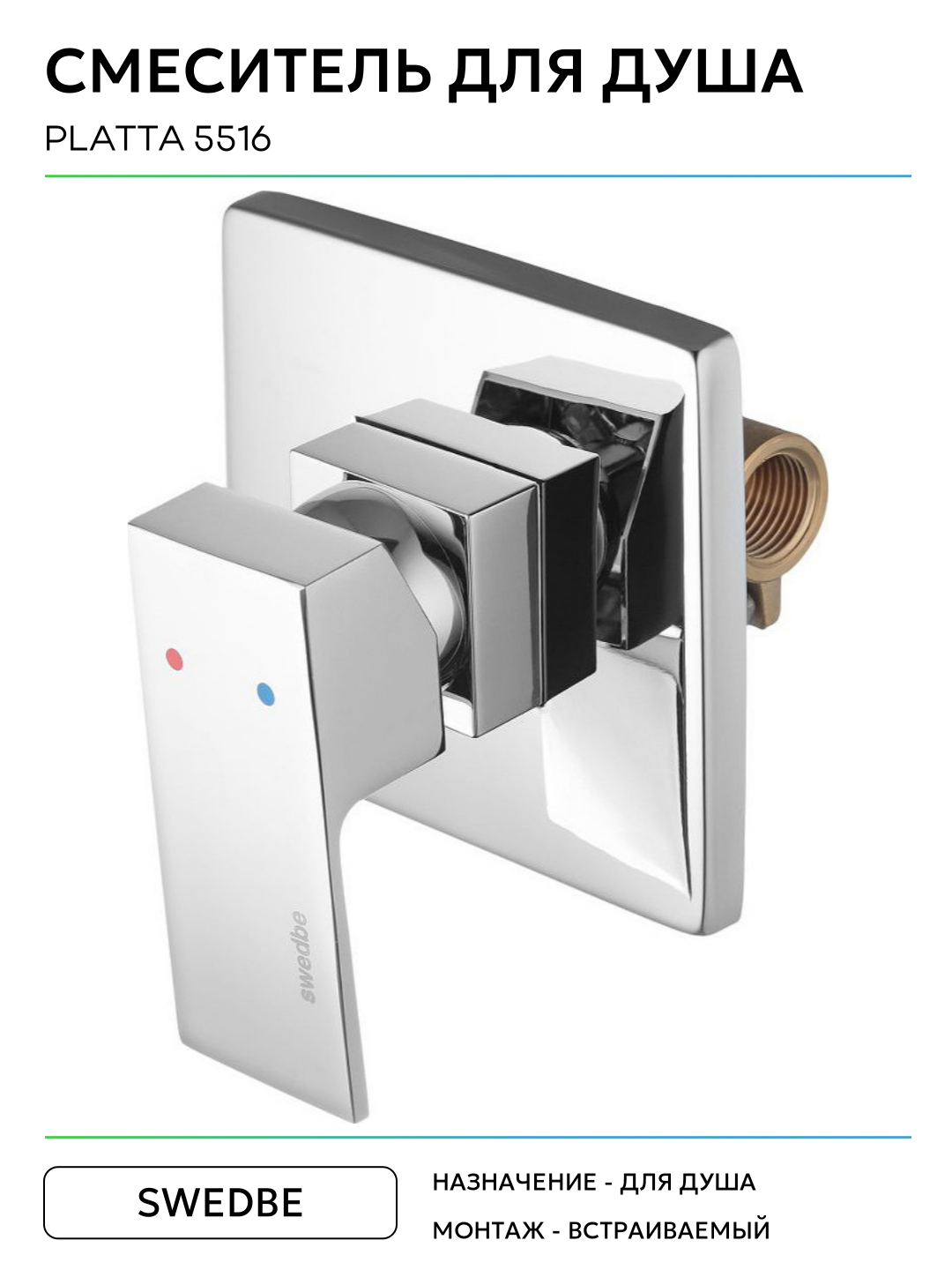 Купить Смеситель для душа Swedbe Platta 5516 Хром латунь встраиваемый Швеция с доставкой по всей России. Смеситель для душа Swedbe Platta 5516 Хром латунь встраиваемый Швеция: сравнение цен, характеристики, фото, актуальное наличие и цены.