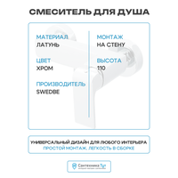 Смеситель для душа Swedbe Velo 2420 Хром латунь на стену Швеция: сравнение цен, характеристики, фото, актуальное наличие и цены.