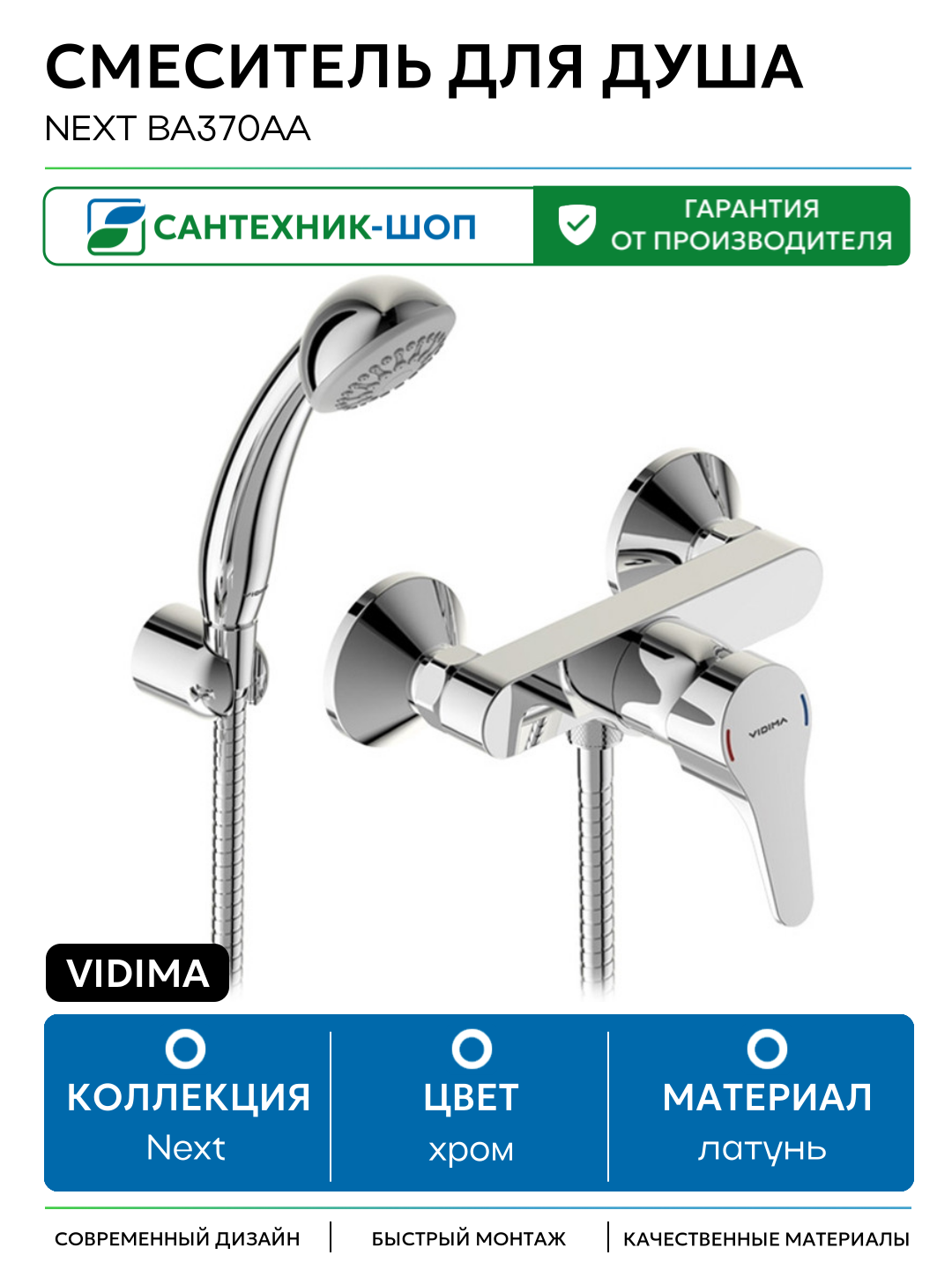Купить Смеситель для душа Vidima Next BA370AA Хром латунь на стену Болгария с доставкой по всей России. Смеситель для душа Vidima Next BA370AA Хром латунь на стену Болгария: сравнение цен, характеристики, фото, актуальное наличие и цены.