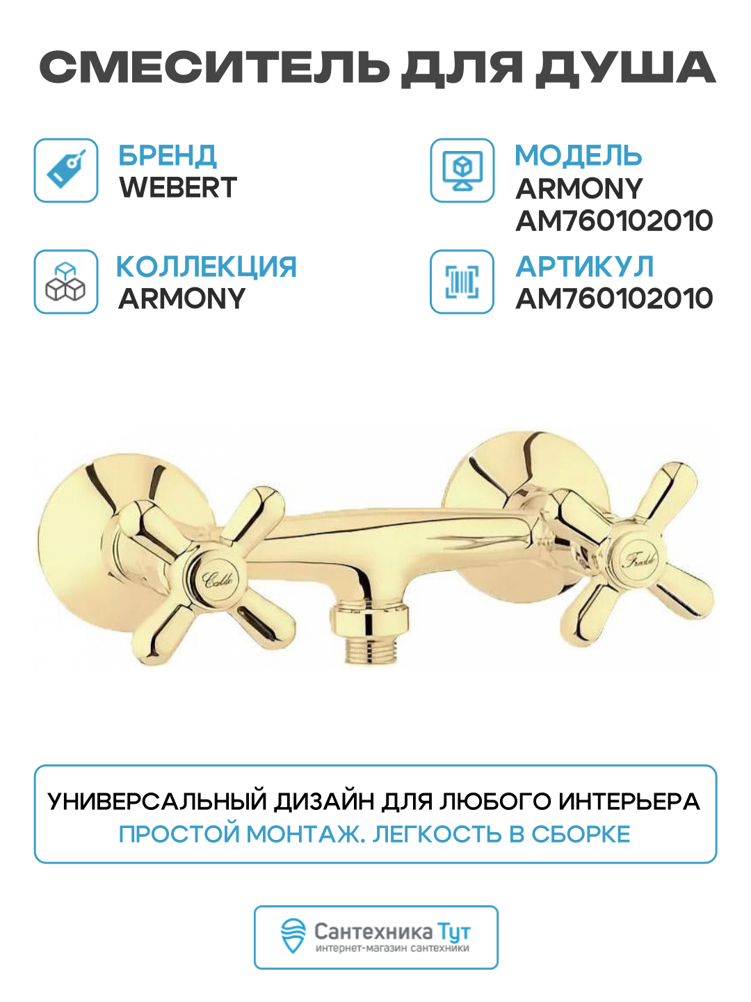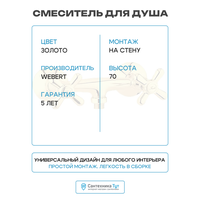 Смеситель для душа Webert Armony AM760102010 Золото латунь на стену Италия: сравнение цен, характеристики, фото, актуальное наличие и цены.