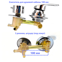 Трёхрежимный смеситель рассчитан на установку в душевые кабины. Межосевое расстояние между монтажными отверстиями в центральной панели душевой кабины равно 100 мм. Используется данный смеситель для переключения на тропической душ, ручную лейку и гидромассажные форсунки.