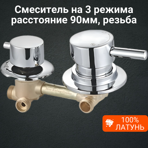 Смеситель для душевой кабины на 3 режима, резьба. Межцентровое расстояние 90мм.: сравнение цен, характеристики, фото, актуальное наличие и цены.