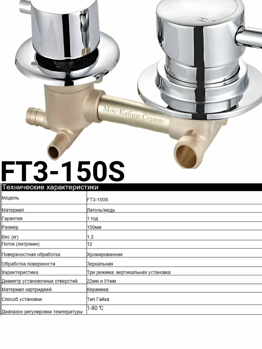 Смеситель для душевой кабины на 3 режима, штуцер. Межцентровое расстояние 150мм.: сравнение цен, характеристики, фото, актуальное наличие и цены.