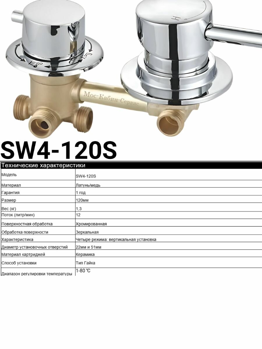 Смеситель для душевой кабины на 4 режима, резьба. Межцентровое расстояние 120мм.: сравнение цен, характеристики, фото, актуальное наличие и цены.