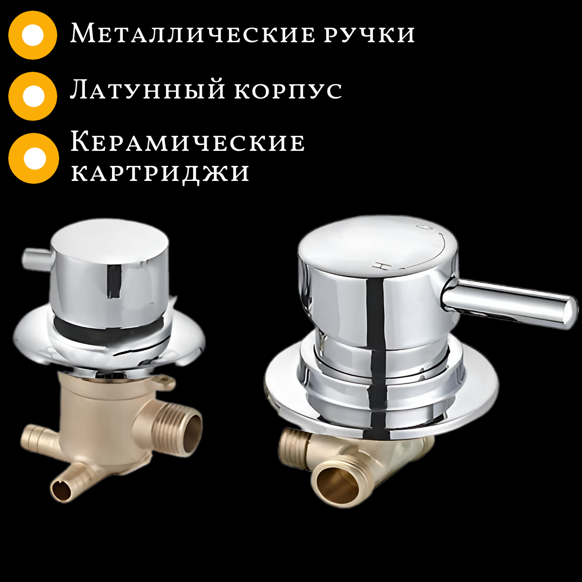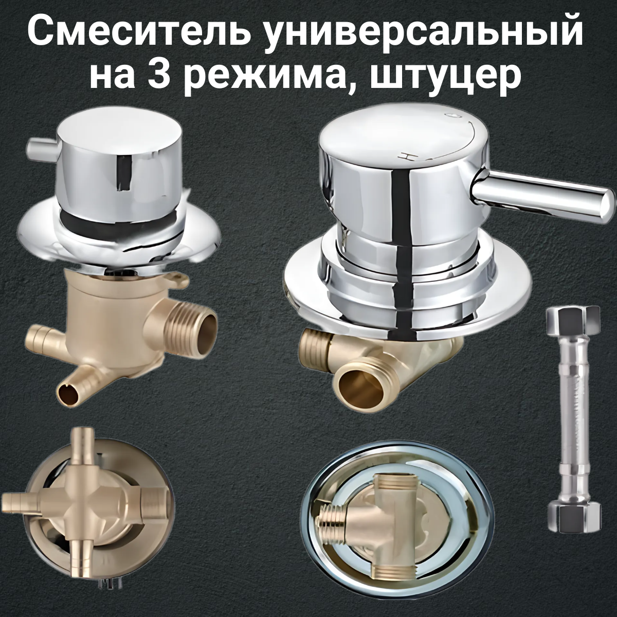 Смеситель для душевой кабины на 3 режима, с штуцером, предназначен для установки в душевых кабинах. Он обеспечивает комфортное и удобное использование, благодаря трем режимам работы и возможности регулировки температуры воды.