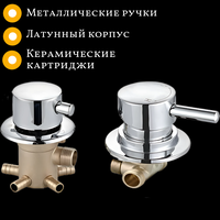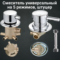Смеситель для душевой кабины универсальный на 5 режимов. Межцентровое расстояние от 80 до 180мм. Металлические ручки. Подключение шлангов - Хомуты. Монтажное крепление смесителя - Гайка.