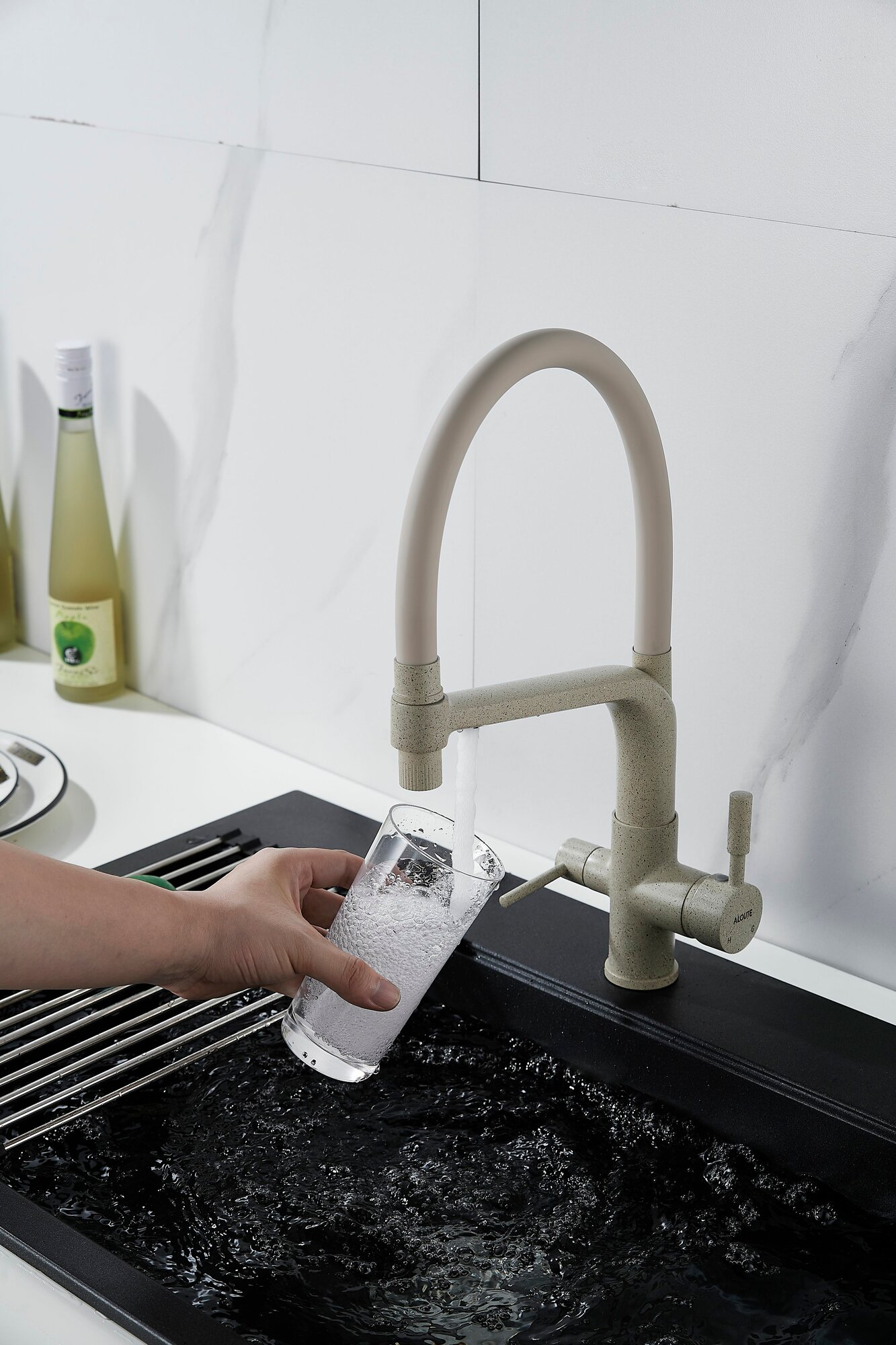 Смеситель для кухни ALOUTE бежевый гранит c силиконовым гибким изливом , однорычажный, с дополнительным выводом под фильтр питьевой воды: сравнение цен, характеристики, фото, актуальное наличие и цены.