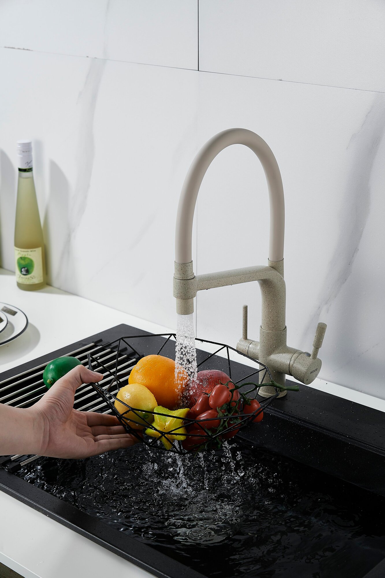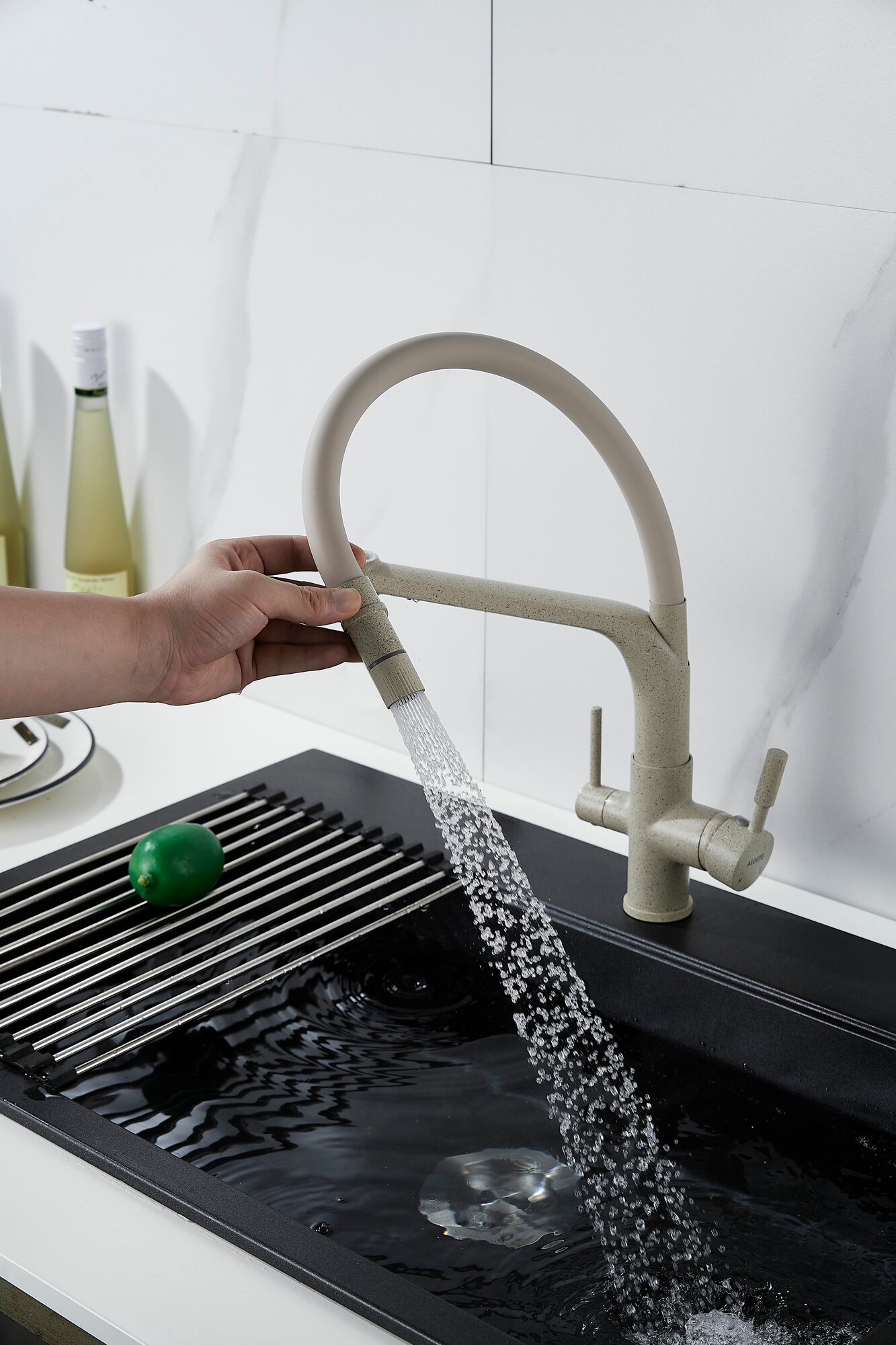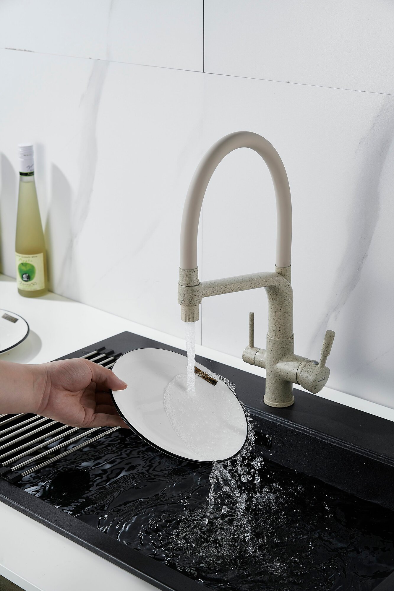 Купить Смеситель для кухни ALOUTE бежевый гранит c силиконовым гибким изливом , однорычажный, с дополнительным выводом под фильтр питьевой воды с доставкой по всей России.