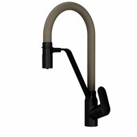 Трендовое сочетание цветов - матовый черный корпус смесителя и бежевый цвет излива идеально впишется в любой современный интерьер кухни