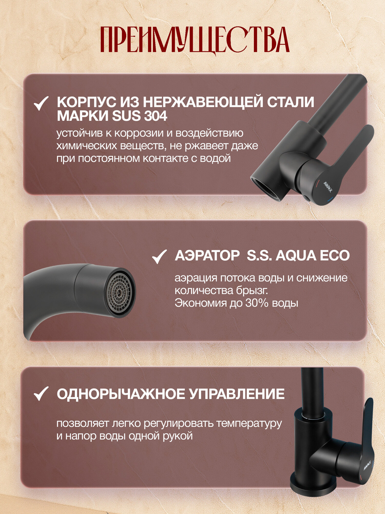 Купить Смеситель для кухни AVAPAX Elbe черный (AP01271B) с доставкой по всей России.
