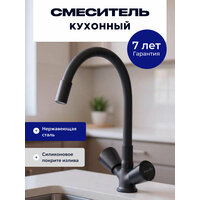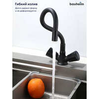Смеситель для кухни BAUHEIM BAU-SAI-1013BL латунный с гибким поворотным изливом, черный