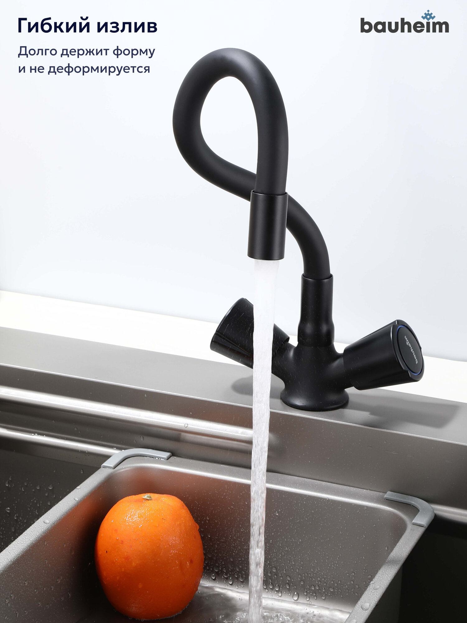 Смеситель для кухни BAUHEIM BAU-SAI-1013BL латунный с гибким поворотным изливом, черный: сравнение цен, характеристики, фото, актуальное наличие и цены.