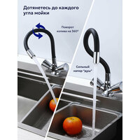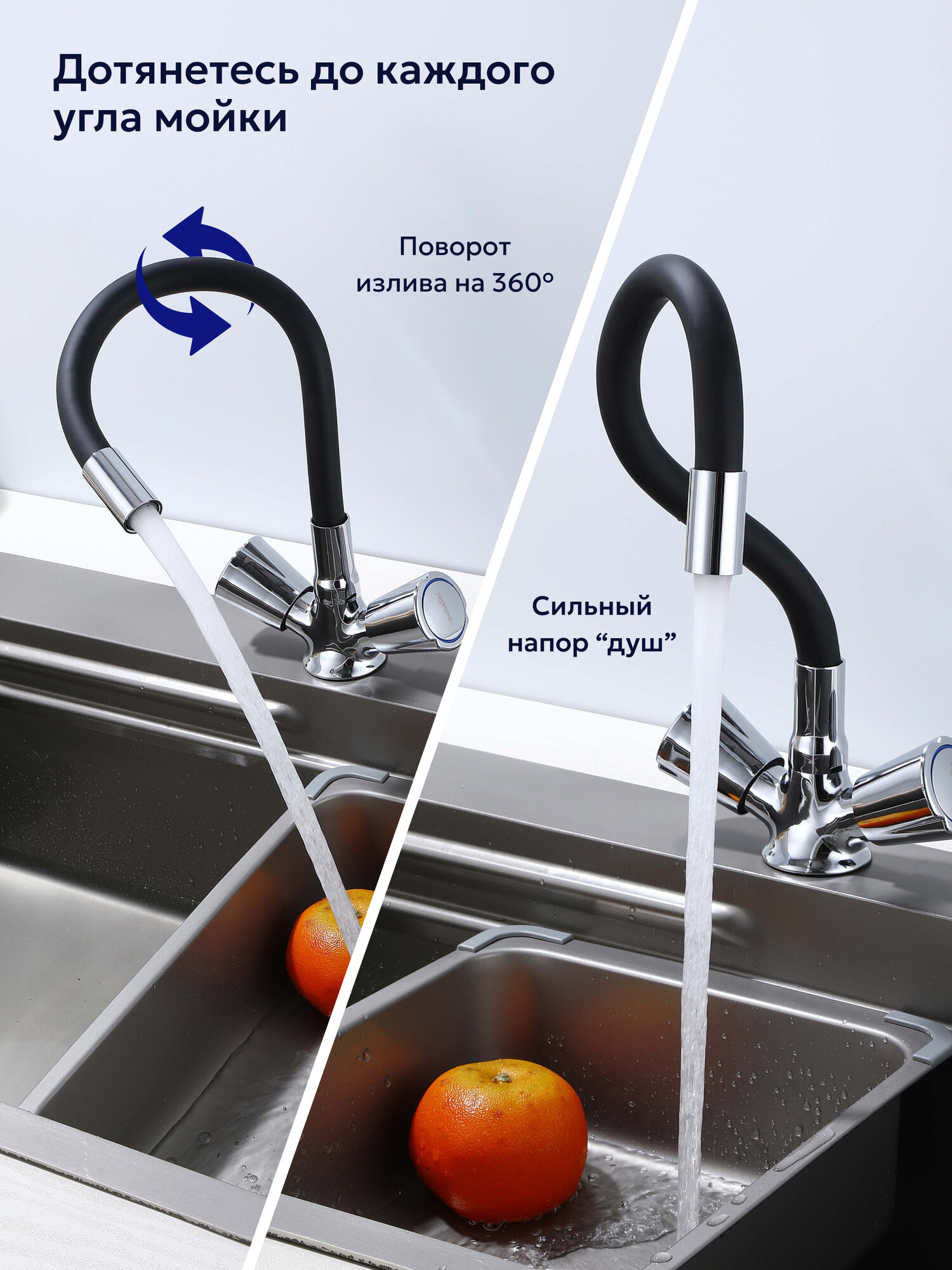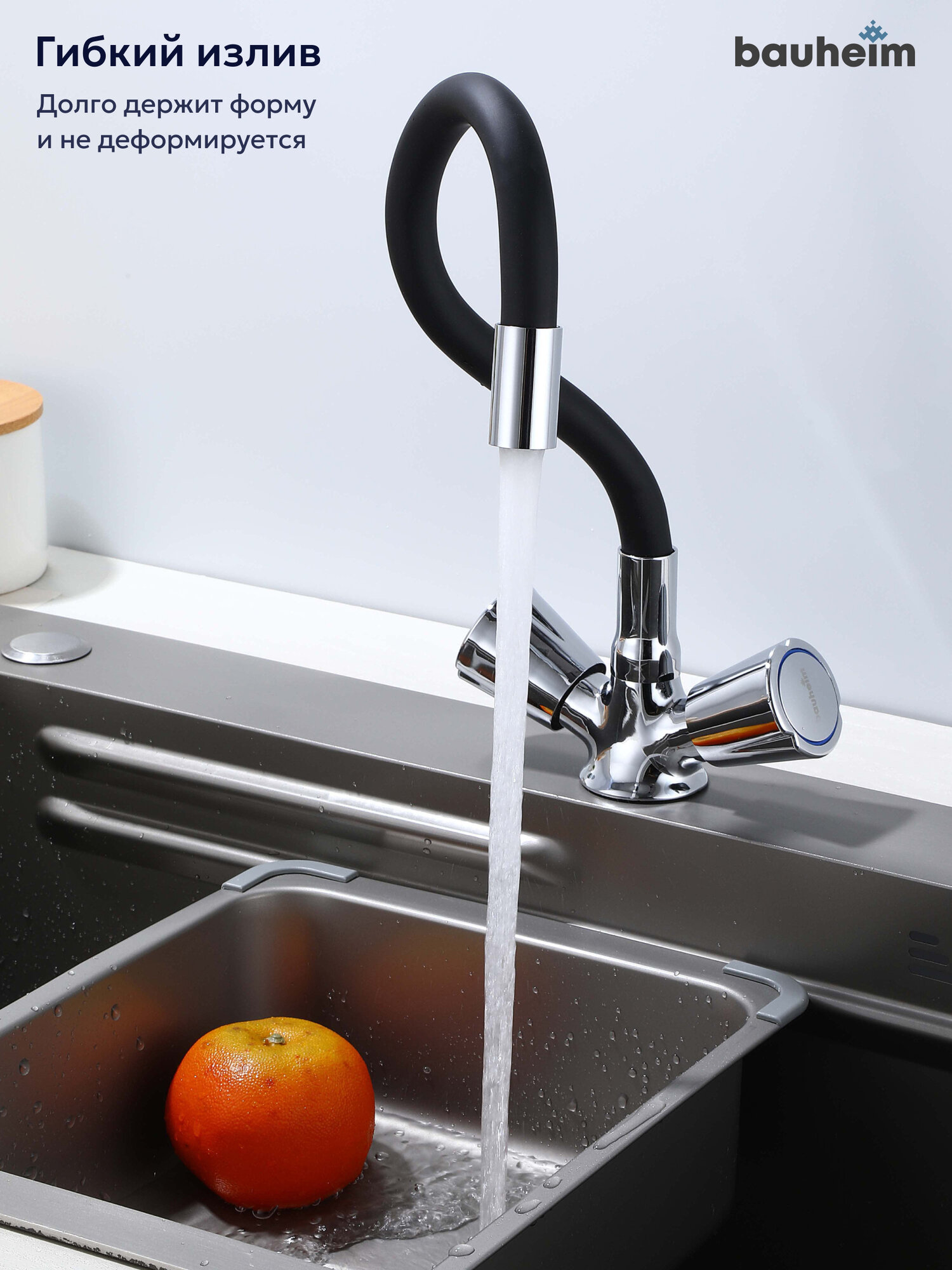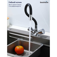 Смеситель для кухни BAUHEIM BAU-SAI-1013CR латунный с гибким поворотным изливом, хром
