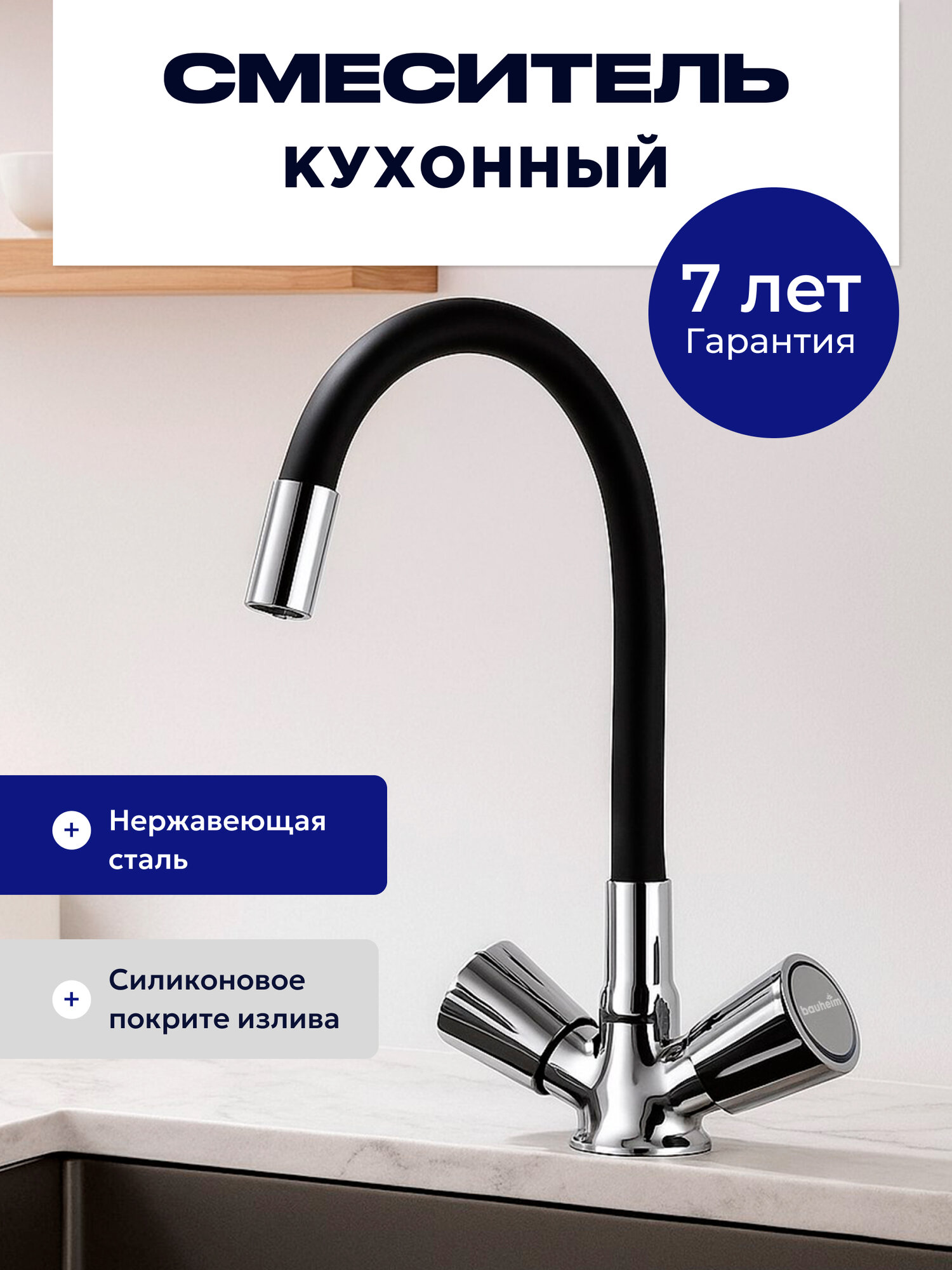 Смеситель для кухни BAUHEIM BAU-SAI-1013CR латунный с гибким поворотным изливом, хром: сравнение цен, характеристики, фото, актуальное наличие и цены.