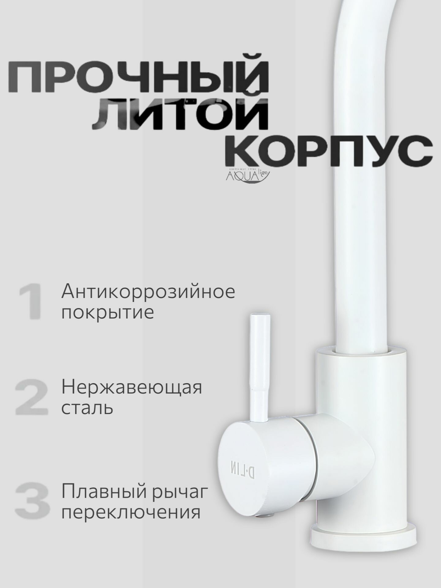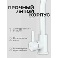 Купить Смеситель для кухни белый, кран с высоким поворотным изливом, нержавеющая сталь с доставкой по всей России.