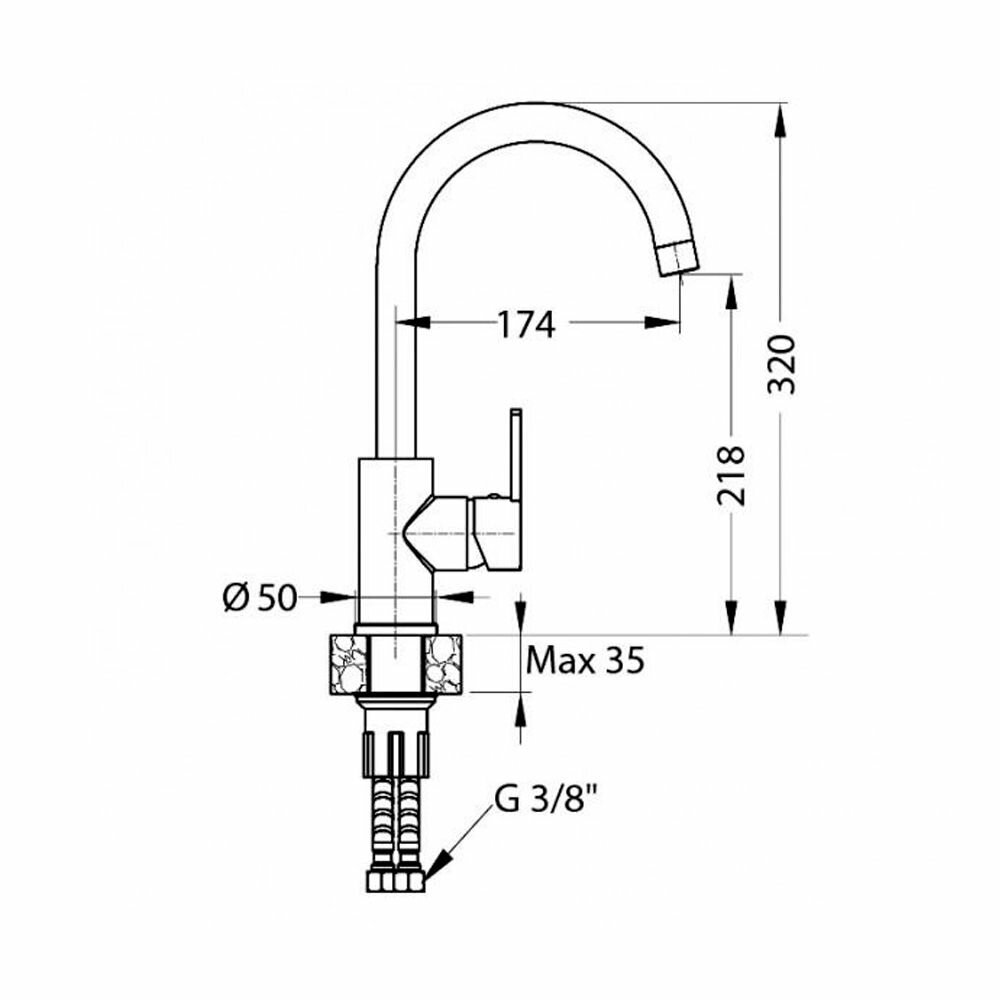 Смеситель для кухни, брашированная сталь, ALVEUS GENESIS 1129055
