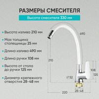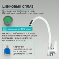 Смеситель для кухни BT-3044, цинковый сплав, хромированный, гибкий, белый: сравнение цен, характеристики, фото, актуальное наличие и цены.