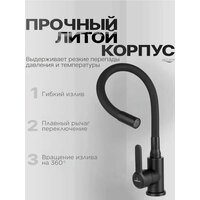 Купить Смеситель для кухни c гибким изливом черный, кран для мойки, однорычажный, высокий, поворотный 360 градусов, матовый с доставкой по всей России. Смеситель для кухни c гибким изливом черный, кран для мойки, однорычажный, высокий, поворотный 360 градусов, матовый: сравнение цен, характеристики, фото, актуальное наличие и цены.