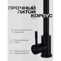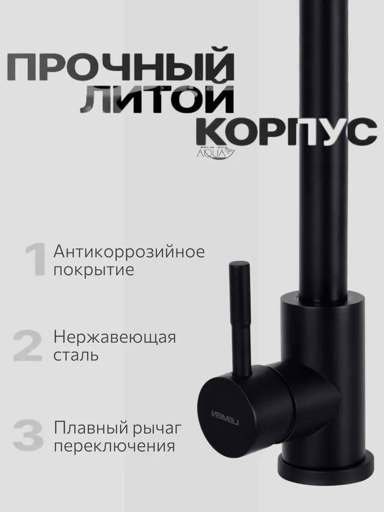 Купить Смеситель для кухни черный для мойки однорычажный высокий, поворотный 360 градусов Lemen нержавеющая сталь матовый с доставкой по всей России.