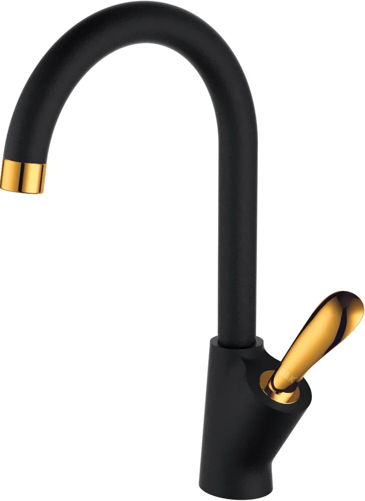 Смеситель для кухни D&K Baciano DA1032459 черный, однорычажный, латунный, золотой, матовый, с поворотным изливом: сравнение цен, характеристики, фото, актуальное наличие и цены.