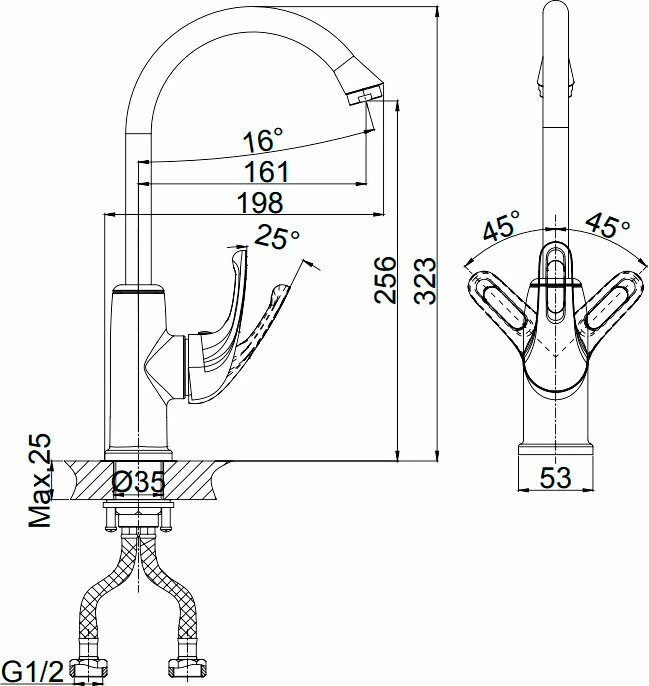 Смеситель для кухни D&K Eucharius Rhein DA1372421 с поворотным изливом, серый, матовый, однорычажный, латунный, с керамическим картриджем: сравнение цен, характеристики, фото, актуальное наличие и цены.