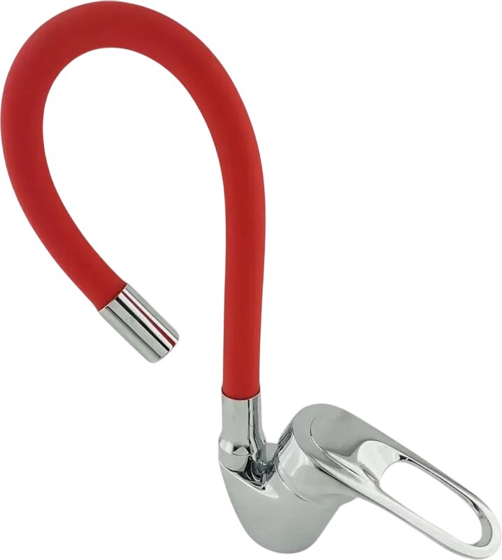 Смеситель для кухни D-lin D150628-4C с гибким изливом, с поворотным изливом, хром, красный, матовый, глянцевый, однорычажный, с керамическим картриджем