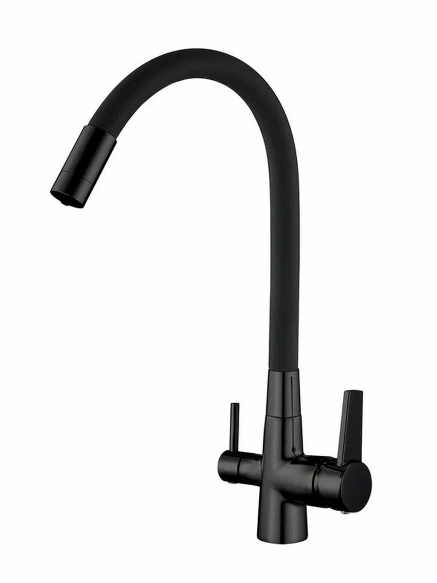 Купить Смеситель для кухни D-LIN D159317-4A с подключением фильтра питьевой воды, чёрный, латунь с доставкой по всей России.