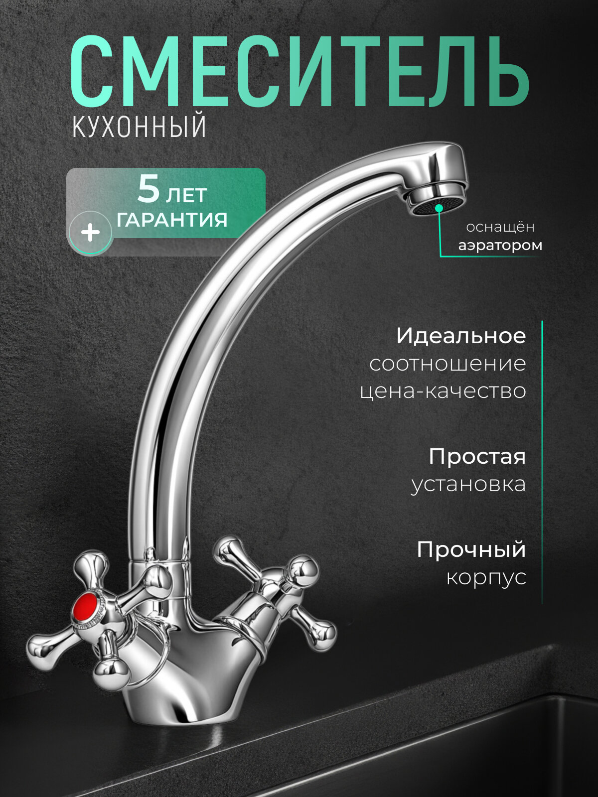 Смеситель для кухни двуручный высокий излив (длина10,5 см, высота 19,5 см), гайка, JUGUNI, Арт: 0411.008: сравнение цен, характеристики, фото, актуальное наличие и цены.