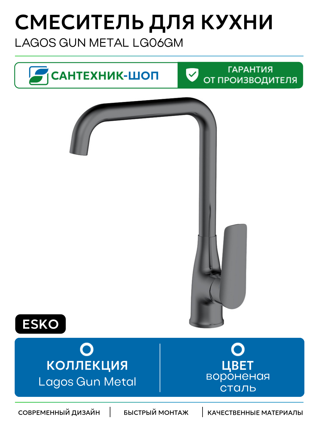 Смеситель для кухни ESKO Lagos Gun Metal LG06GM цвет Оружейная сталь Чехия: сравнение цен, характеристики, фото, актуальное наличие и цены.