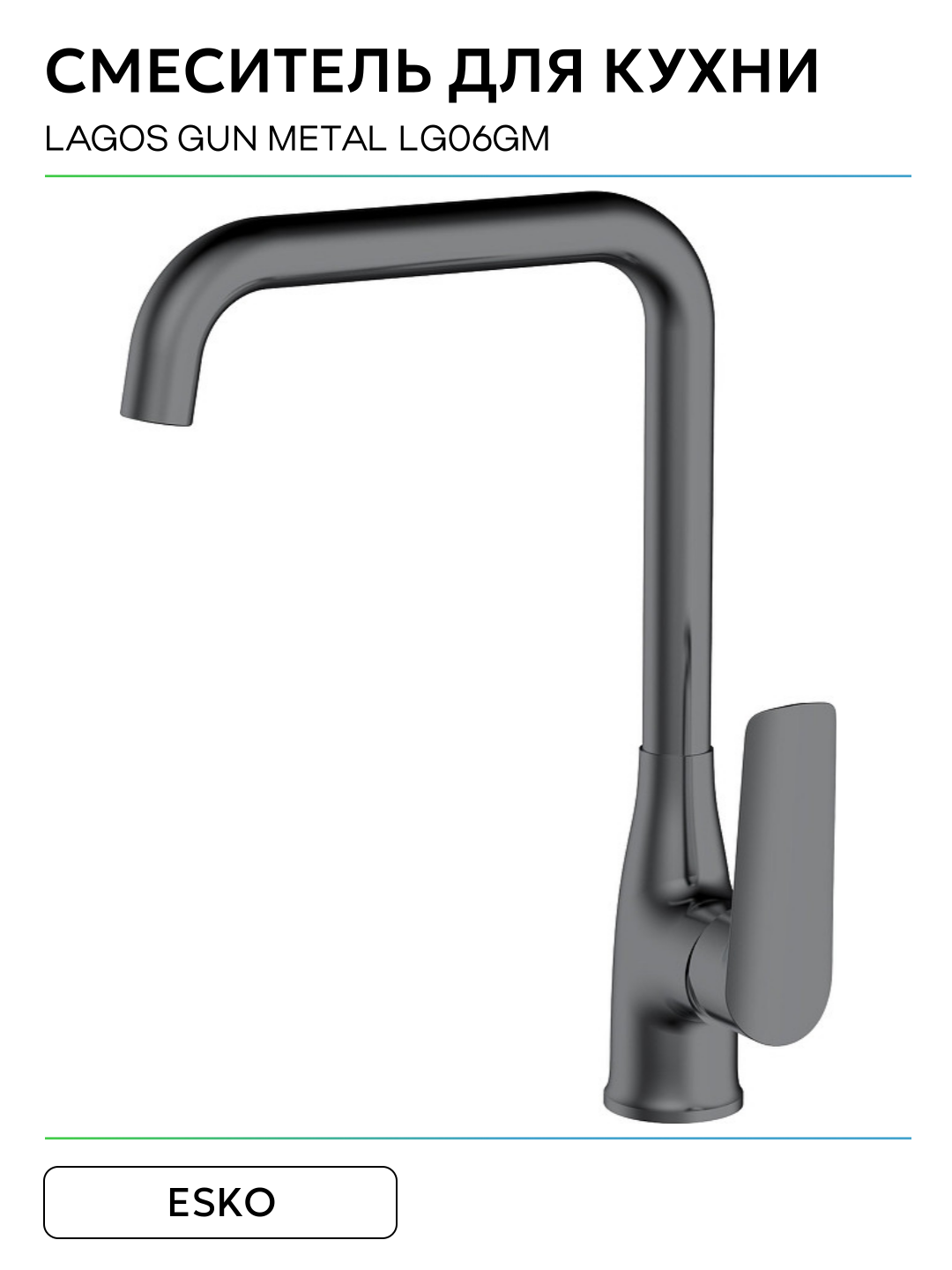 Купить Смеситель для кухни ESKO Lagos Gun Metal LG06GM цвет Оружейная сталь Чехия с доставкой по всей России.