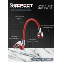 Купить Смеситель для кухни Эверест B58-274C с гибким изливом, картридж 35 мм, красный, крепление гайка с доставкой по всей России.