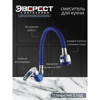Купить Смеситель для кухни Эверест B58-274DS с гибким изливом, картридж 35 мм, синий, крепление гайка с доставкой по всей России.