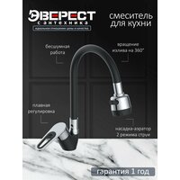 Купить Смеситель для кухни Эверест B58-274F с гибким изливом, картридж 35 мм, чёрный, крепление гайка с доставкой по всей России.