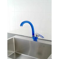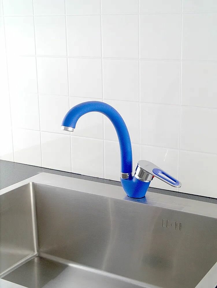 Купить Смеситель для кухни Эверест B59-274DS с высоким изливом, картридж 35 мм, синий, крепление гайка с доставкой по всей России.