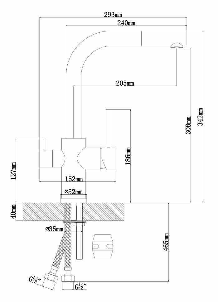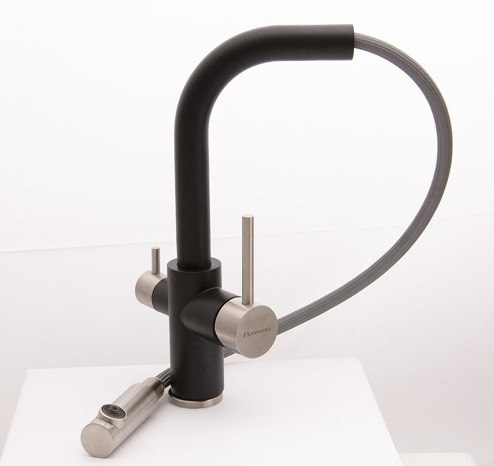 Смеситель для кухни с гибким изливом и подключением фильтра R558Y цвет темно-серый/черный