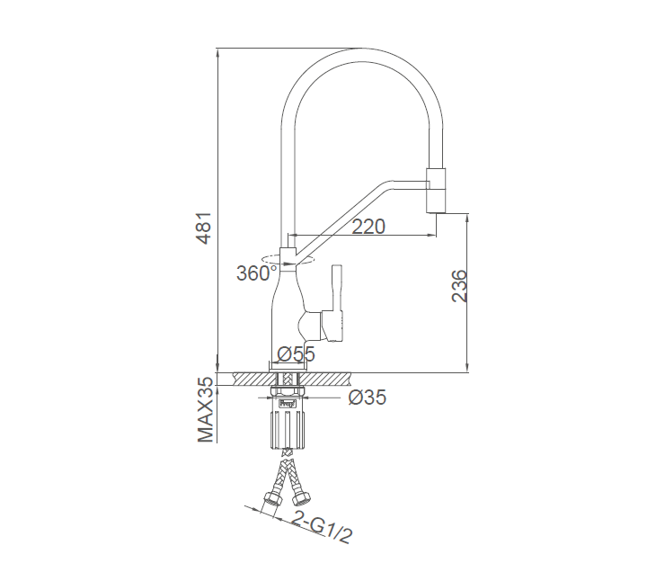 | Излив | гибкий, поворотный |