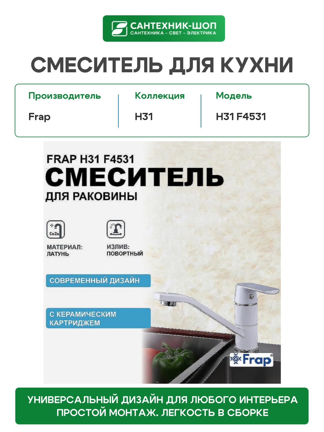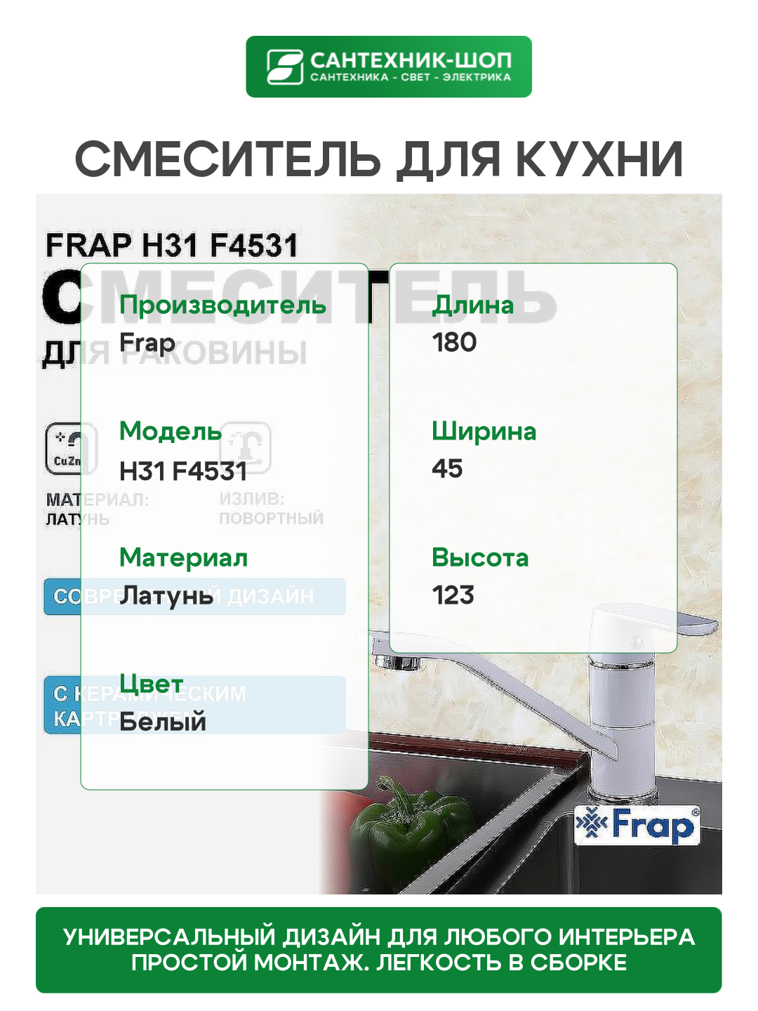 Купить Смеситель для кухни Frap H31 F4531 Белый латунь, стильный дизайн с доставкой по всей России. Смеситель для кухни Frap H31 F4531 Белый латунь, стильный дизайн: сравнение цен, характеристики, фото, актуальное наличие и цены.