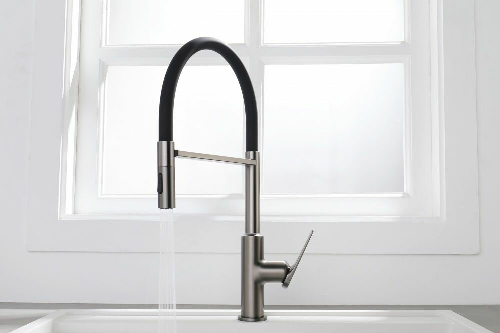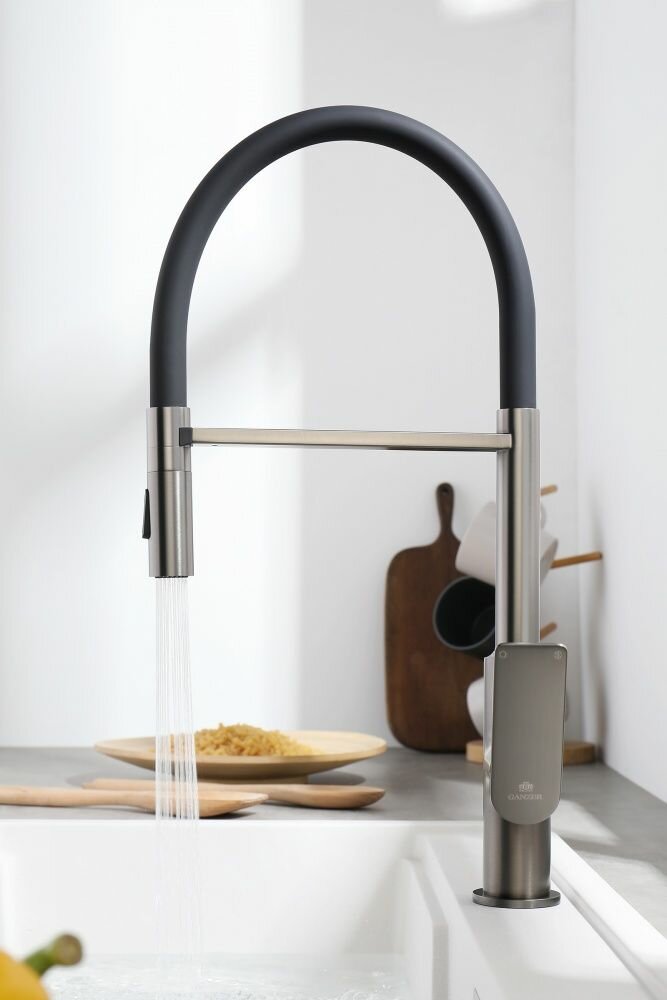 Купить Смеситель для кухни GANZER с гибким магнитным изливом/Графит+черный (GZ07126-Q) с доставкой по всей России.